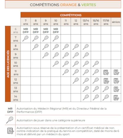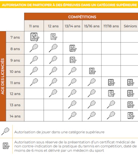 Le calendrier des compétitions par couleurs (U8 à U12) :
