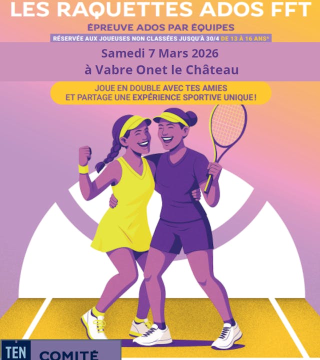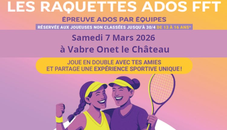 Épreuve ADOS par équipes ouverte aux joueuses NC, 40, 30/5 et 30/4 (ne pas avoir été classée 30/3 ou mieux) de 13 à 16 ANS (DÉROGATION ACCORDÉE AUX 11/12 ANS).