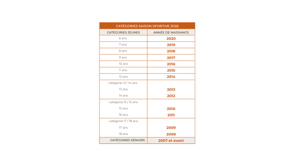 Le joueur doit s’inscrire en ligne SUR TEN UP (lien à droite) dans sa catégorie d’âge et règle son engagement en ligne.