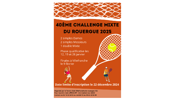 Le Challenge Mixte du Rouergue est réservé aux clubs affiliés FFT.